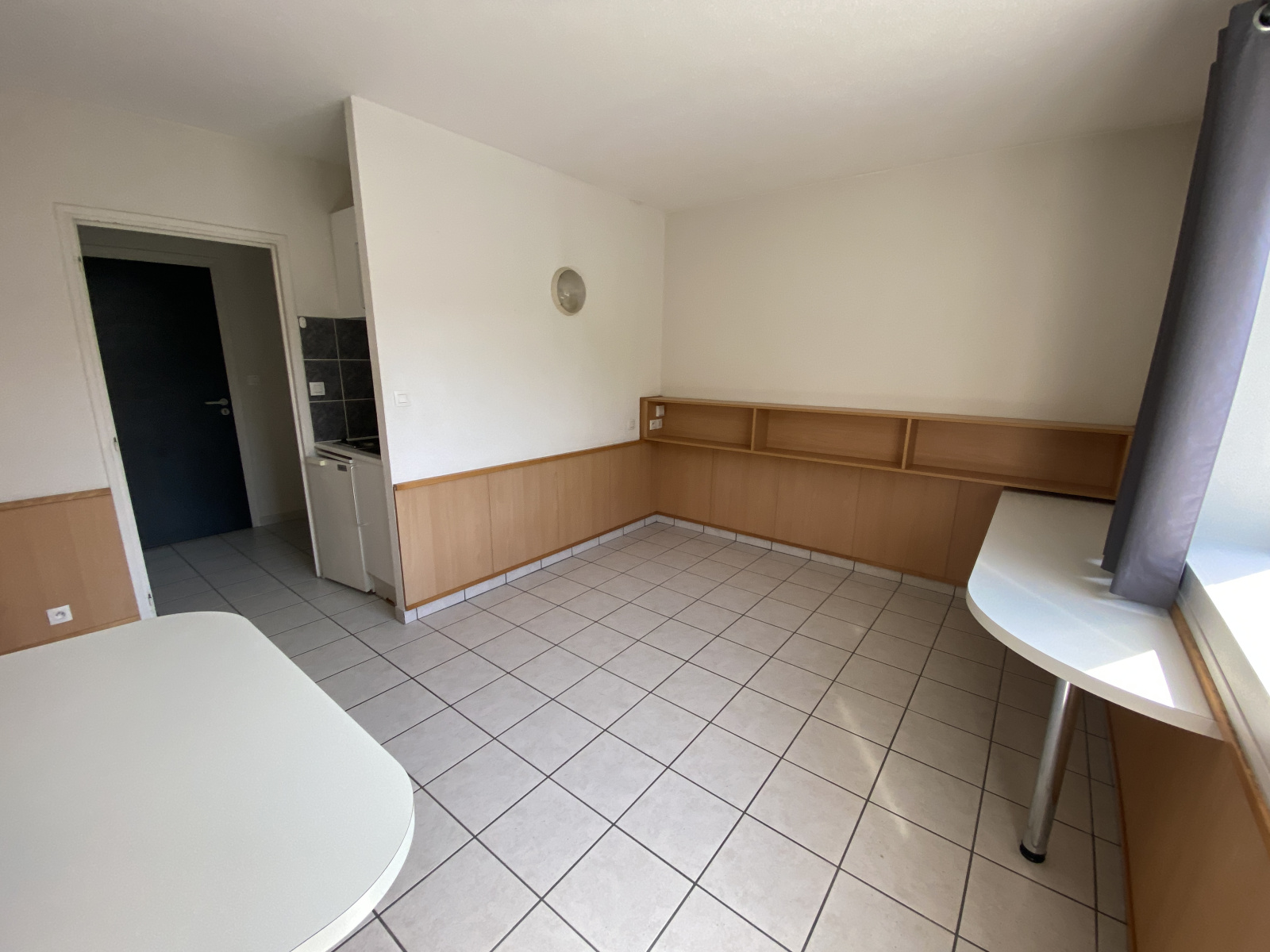 Le studio se compose d’une pièce de vie avec kitchenette équipée (plaque de cuisson, réfrigérateur) ainsi que de rangements. Salle d’eau avec WC.