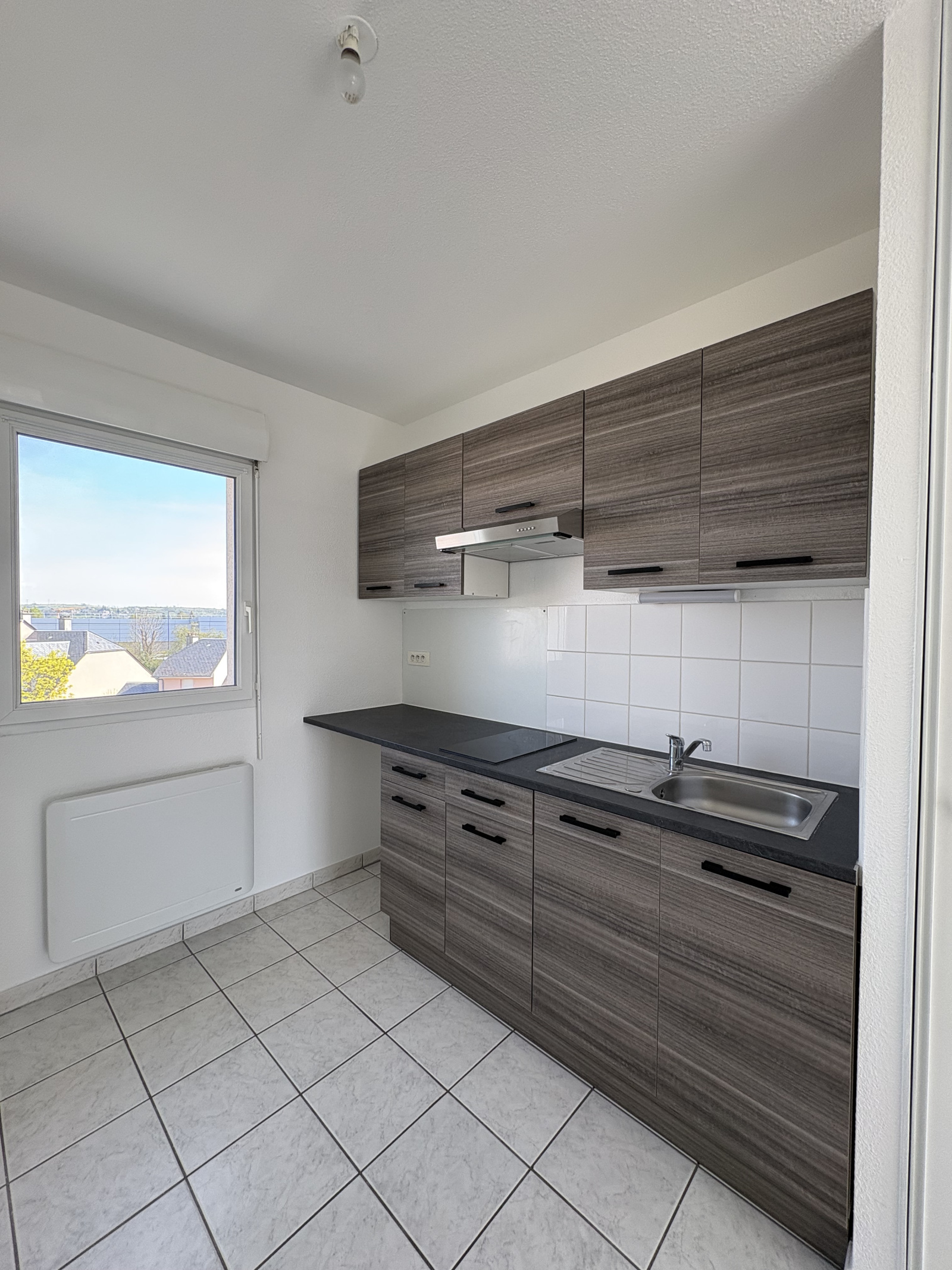 A louer beau T2 récent de 51 m² avec vue dégagée. il se compose d'une entrée, d'un séjour accédant sur une terrasse, une cuisine équipée ( hotte, évier, plaques de cuisson et placard de rangement). Il comprend également une chambre, une salle d'eau avec WC séparés.