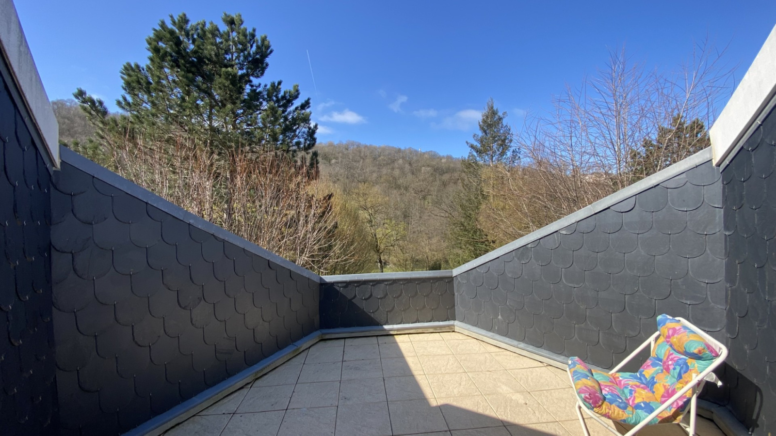 De larges baies vitrées ouvrent sur une spacieuse terrasse de 43 m2 et un jardin, offrant une vue dégagée, rare en milieur urbain.